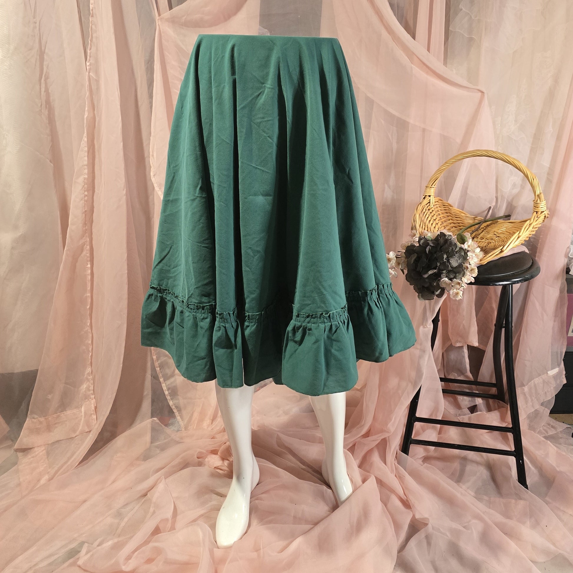 Vintage green circle tablecloth with matching ruffle repurposed into a skirt